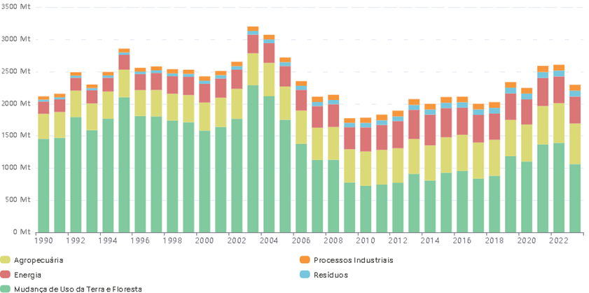 Essa fase de crescimento acelerado coincidiu com o aumento das emissões nacionais. Após uma queda entre 2005 e 2012, resultado de políticas de controle do desmatamento, como o Plano de Prevenção e Controle do Desmatamento na Amazônia (PPCDAm), os índices voltaram a subir nos últimos anos. Isso refletiu o enfraquecimento da fiscalização ambiental e o avanço contínuo das áreas de produção.